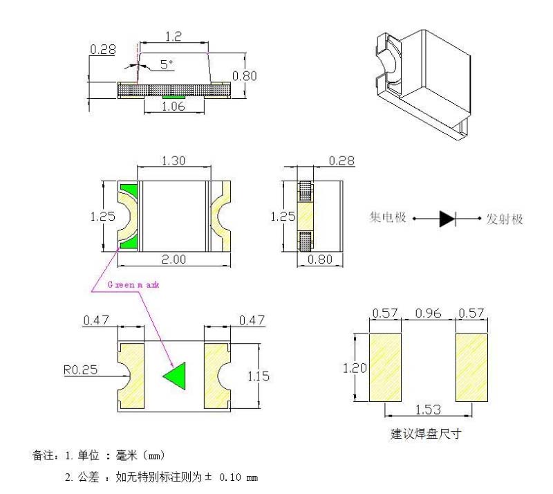 - 外觀尺寸(L/W/H):2.0*1.25*0.8mm