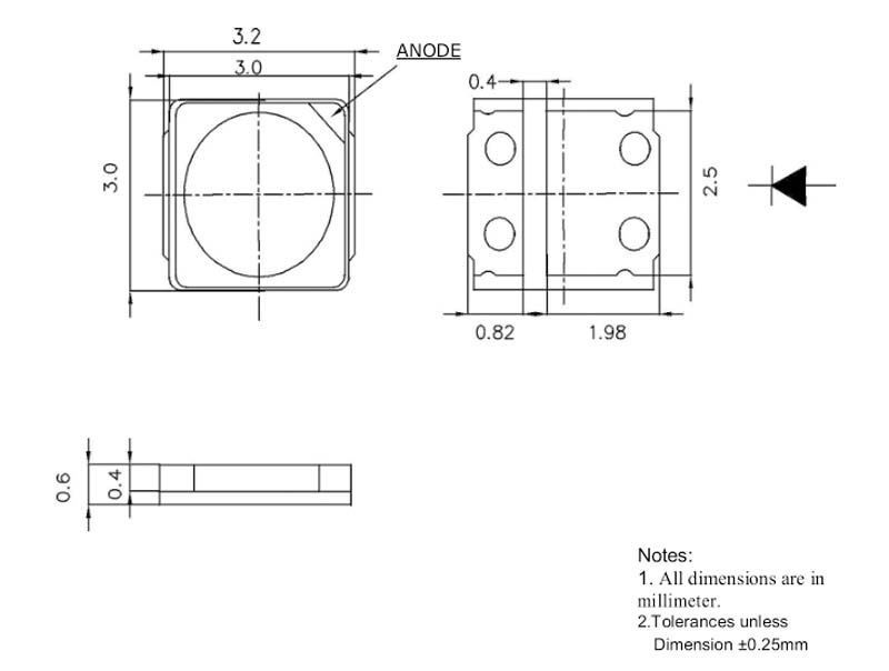 - 外觀尺寸:3.0*3.0mm