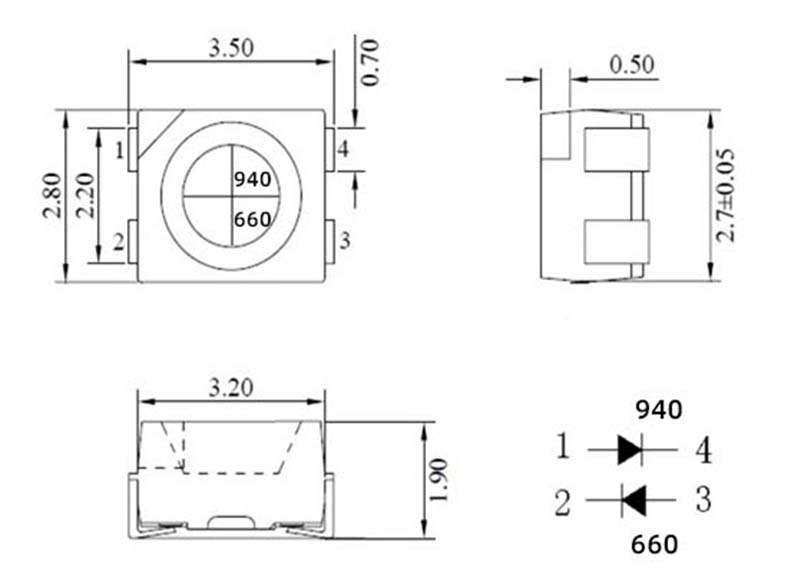 3528IR940+660nm血氧燈珠