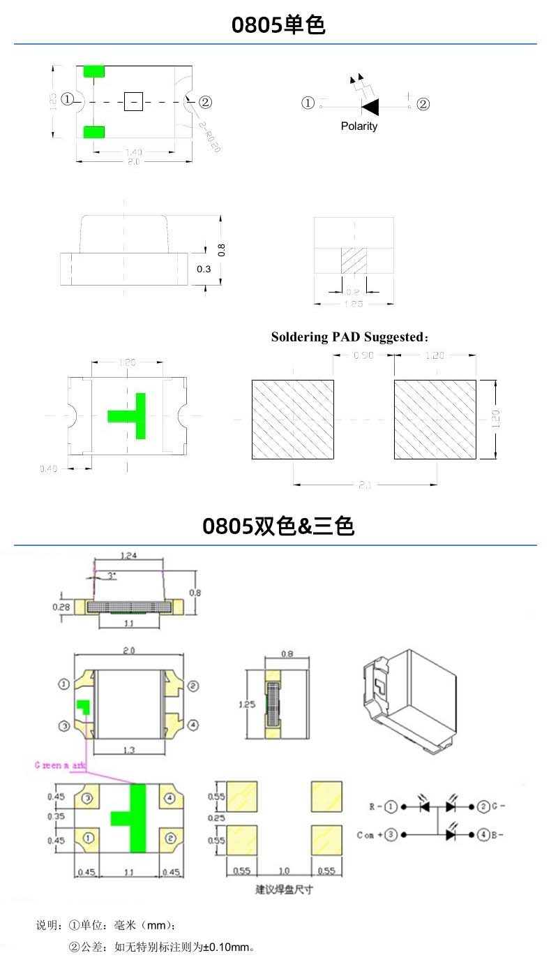 貼片0805雙色系列燈珠可定制 |